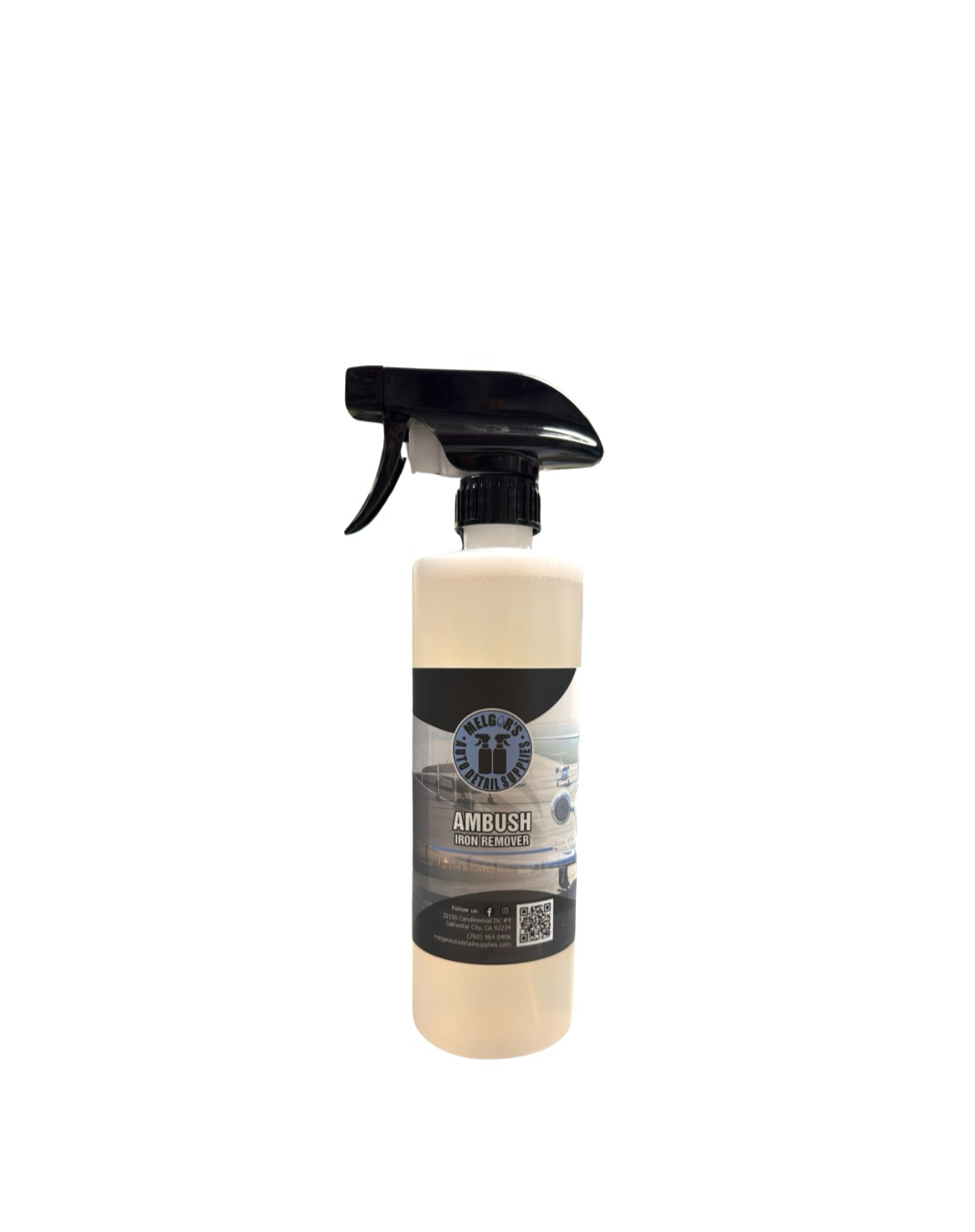 Ambush - Iron Remover is an acid free pH balanced iron remover that safely removes metallic and iron deposits from chrome, paint, plastic, glass and alloy wheels.